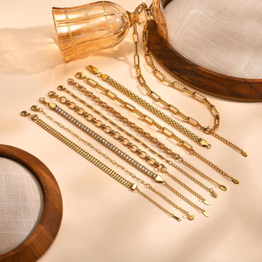سوار سلسلة من الفولاذ المقاوم للصدأ مطلي بالذهب عيار 18 قيراط،
